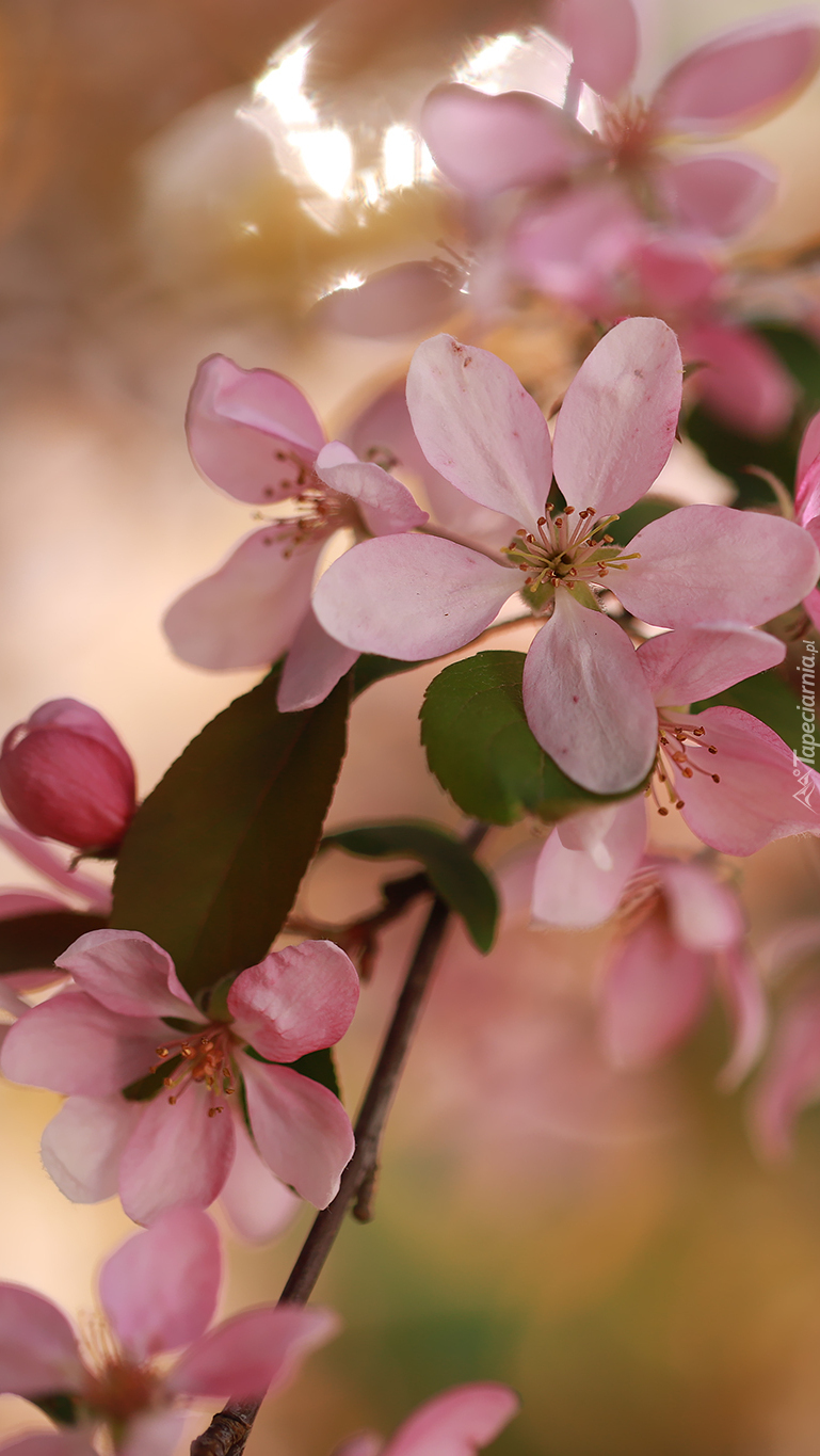 Edytor tapety: Gałązka z różowymi kwiatami jabłoni