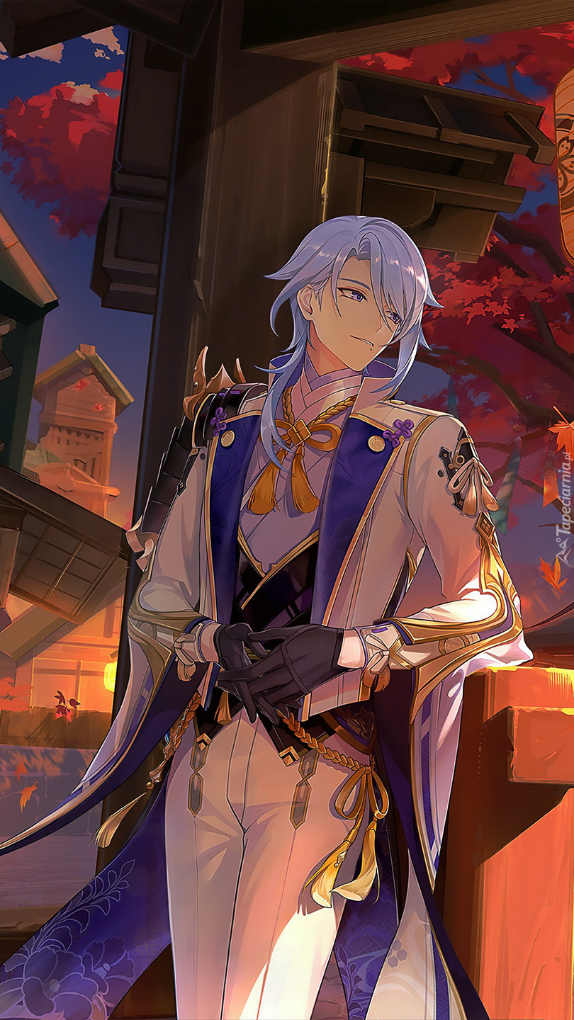 Edytor tapety: Kamisato Ayato z gry Genshin Impact