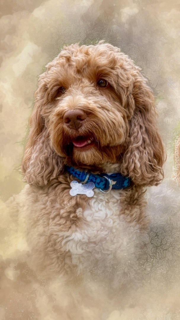 Edytor tapety: Pudel brązowy z obróżką