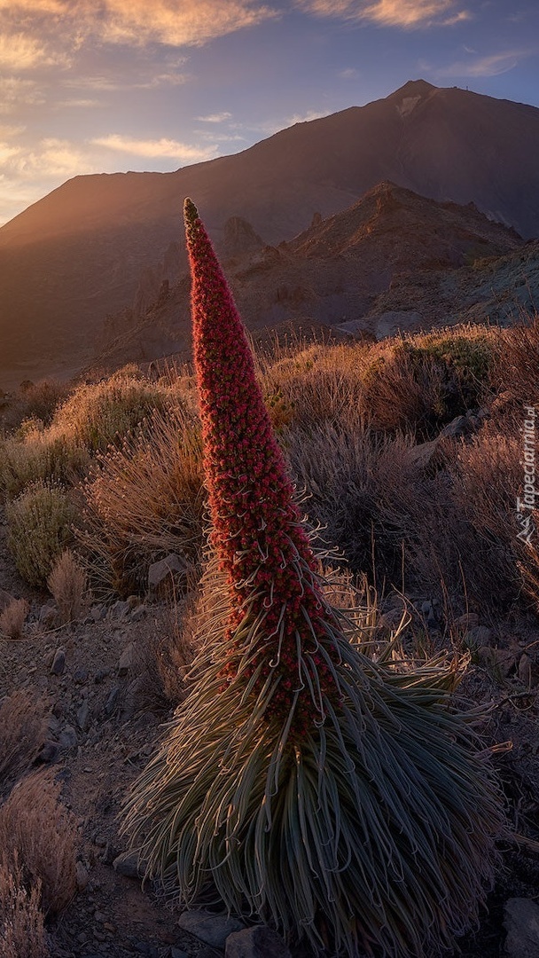 Edytor tapety: Żmijowiec rubinowy na tle góry Teide