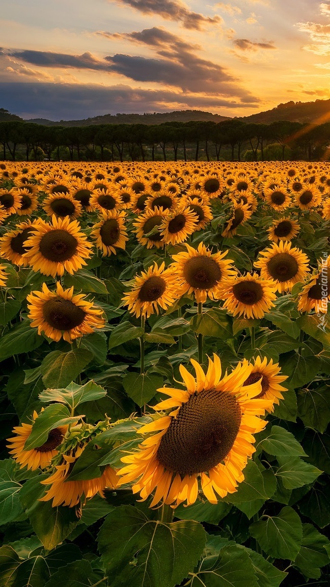 Edytor tapety: Pole słoneczników w promieniach słońca