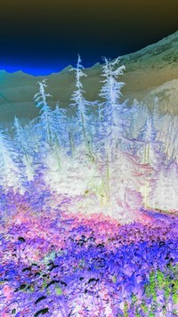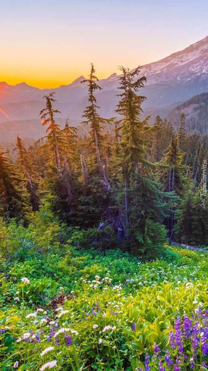 Edytor tapety: Polne kwiaty i drzewa na łące