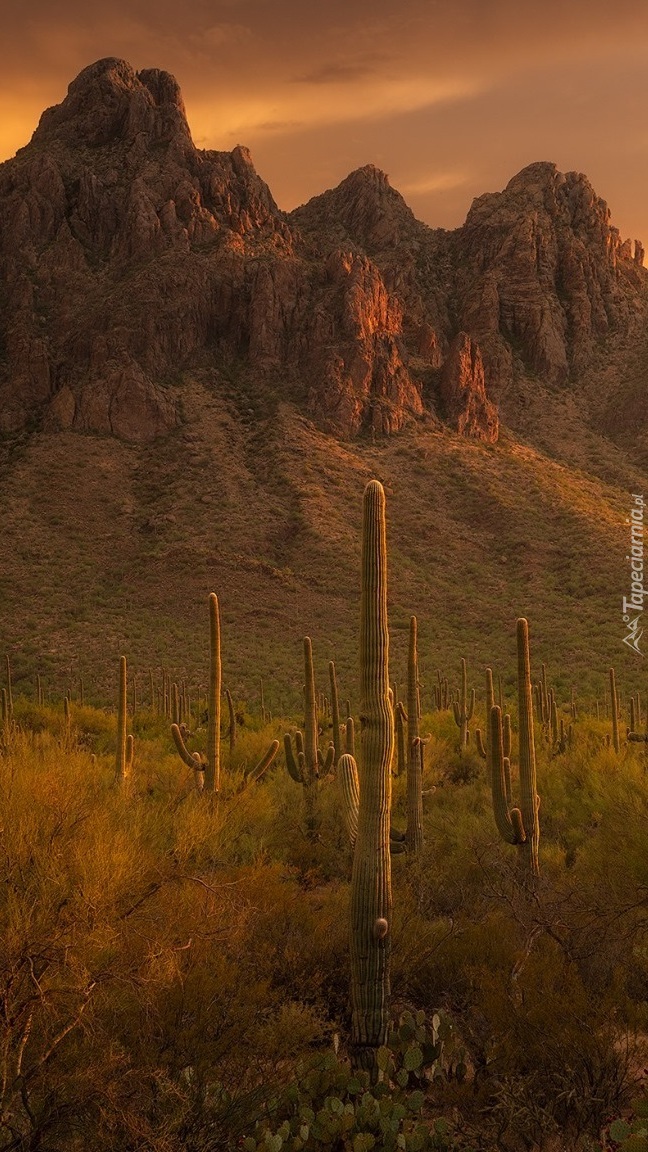Edytor tapety: Kaktusy na tle gór w Arizonie
