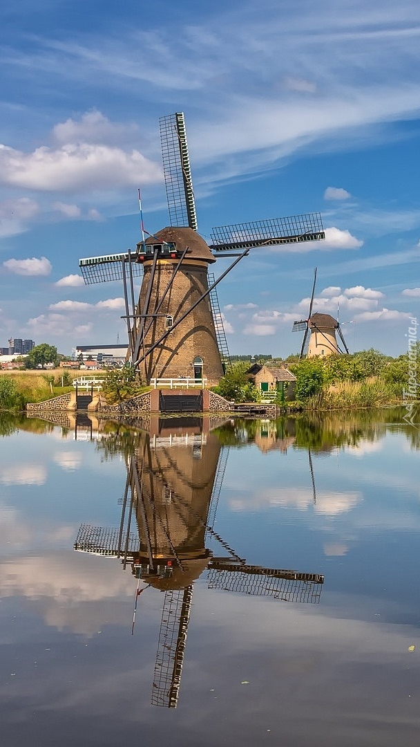 Edytor tapety: Wiatraki nad rzeką w Kinderdijk