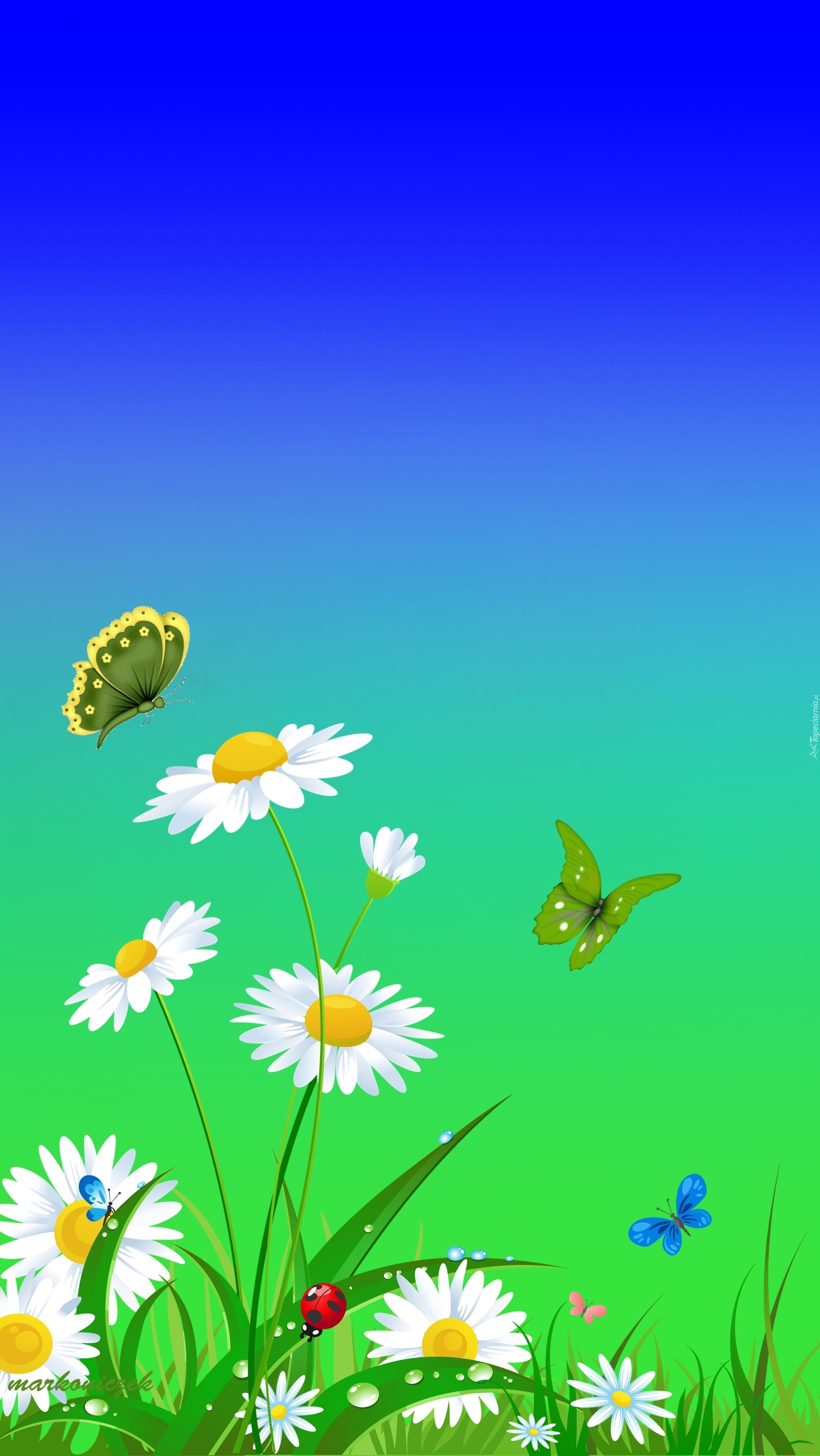 Edytor tapety: Motylki nad wiosennymi kwiatami