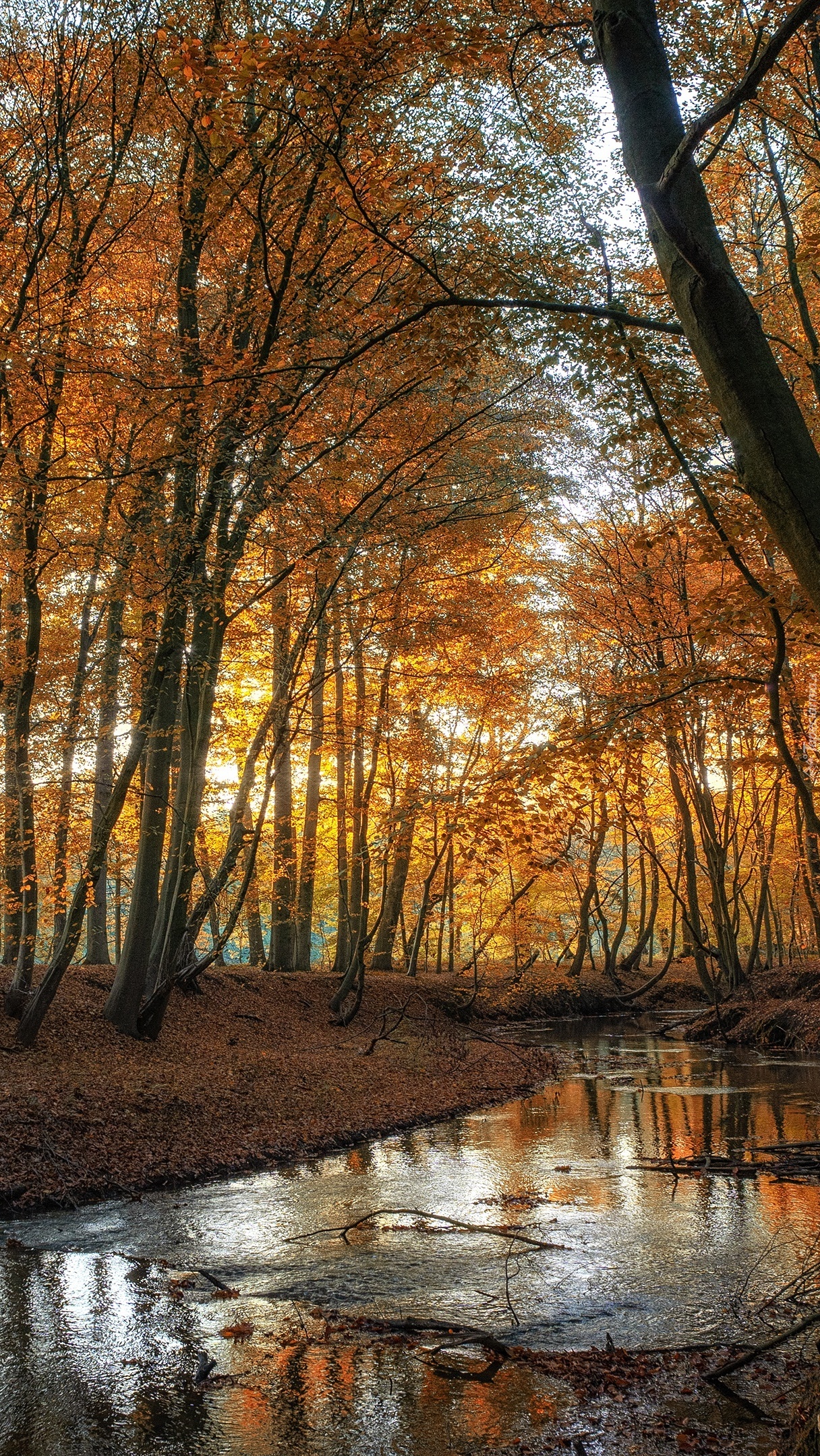Edytor tapety: Rozświetlone jesienne drzewa nad rzeką