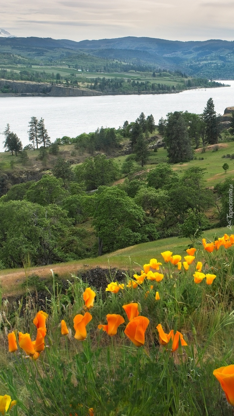 Edytor tapety: Maczki kalifornijskie na wzgórzu