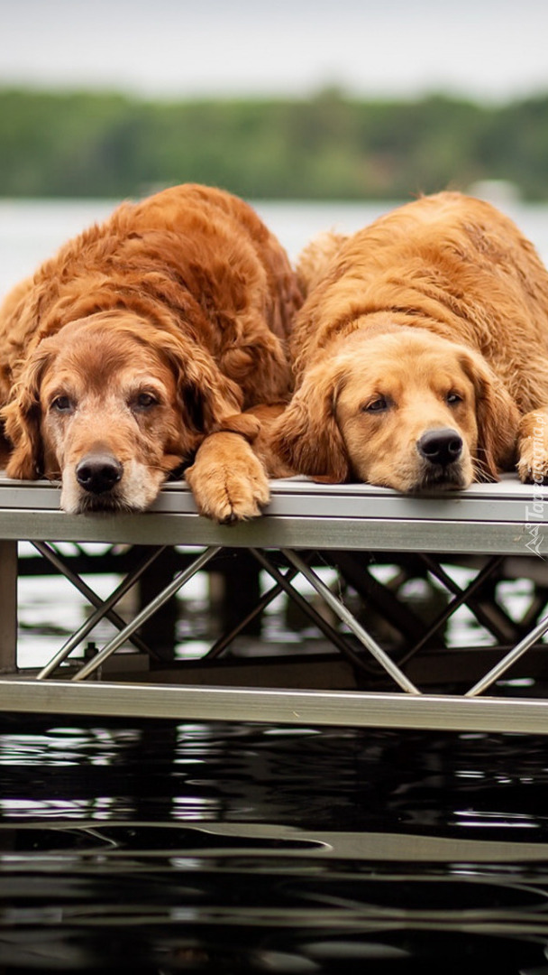 Edytor tapety: Brązowe golden retrievery na pomoście