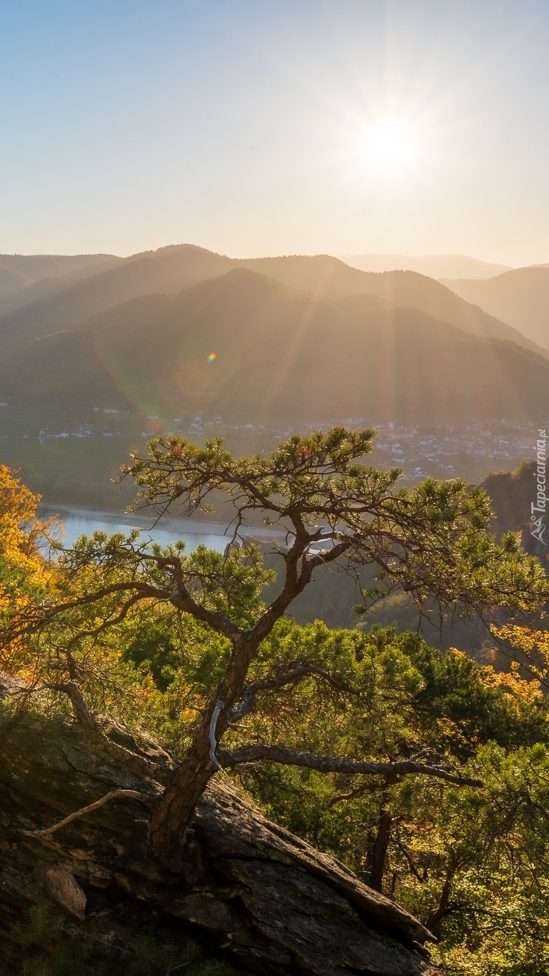 Edytor tapety: Sosna na tle gór
