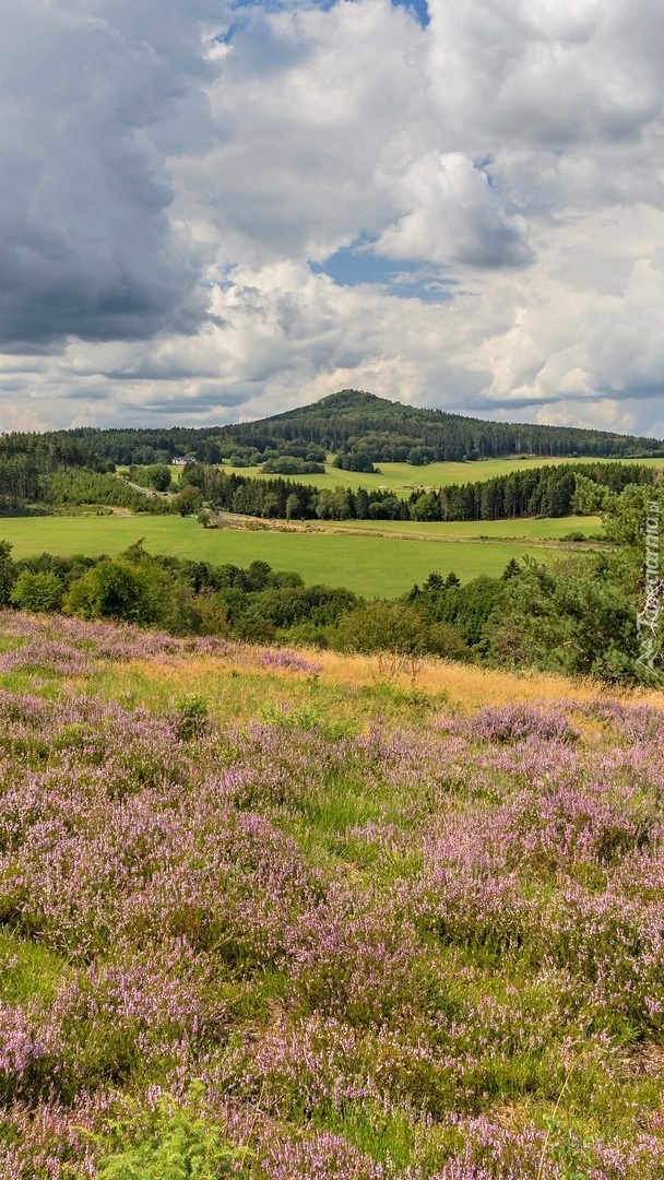 Edytor tapety: Wrzosowisko i drzewa na łące