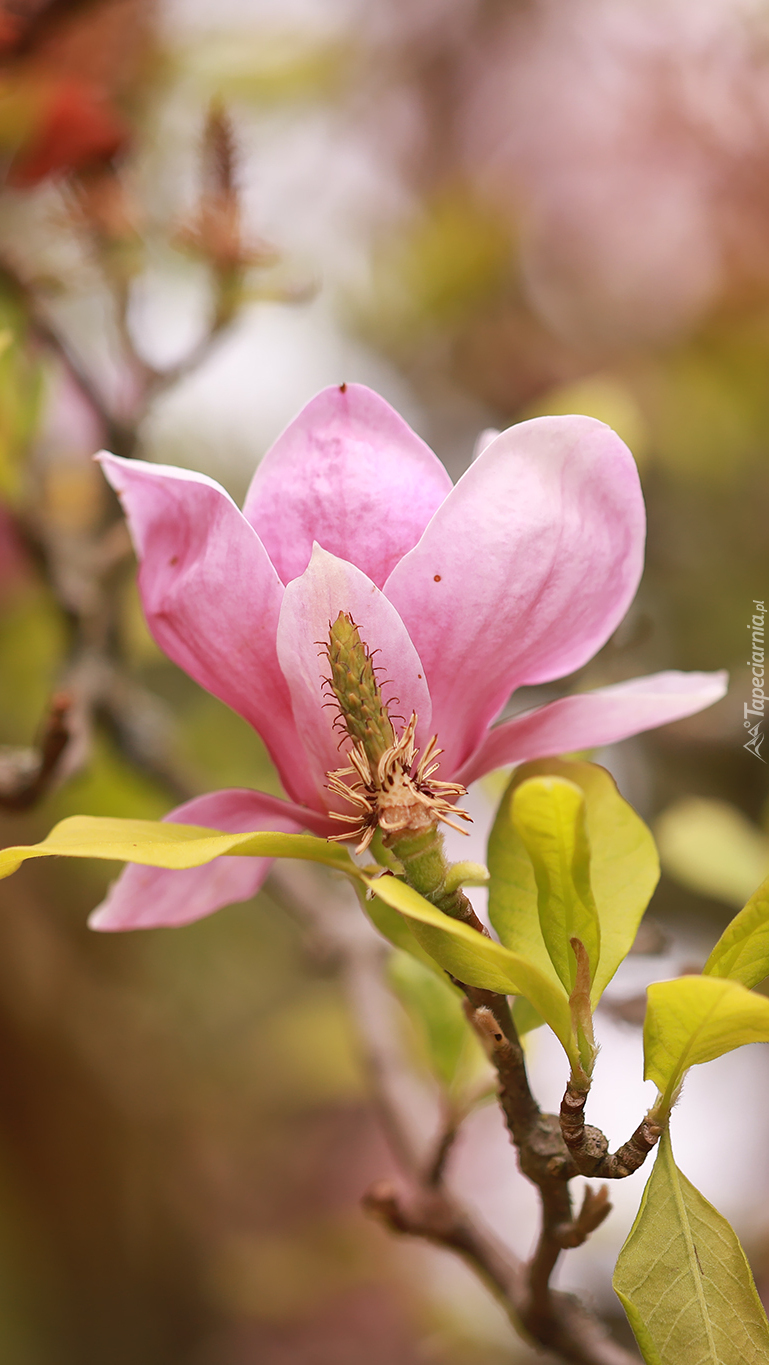 Edytor tapety: Rozkwitająca różowa magnolia