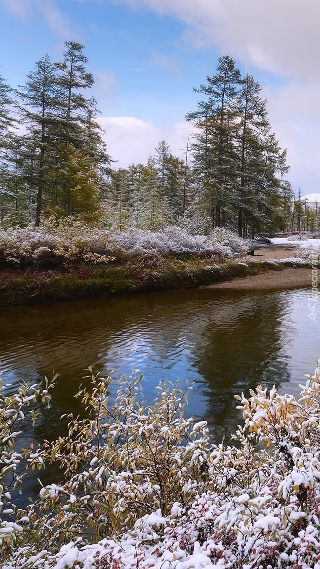 Edytor tapety: Krzewy i drzewa nad rzeką Purga