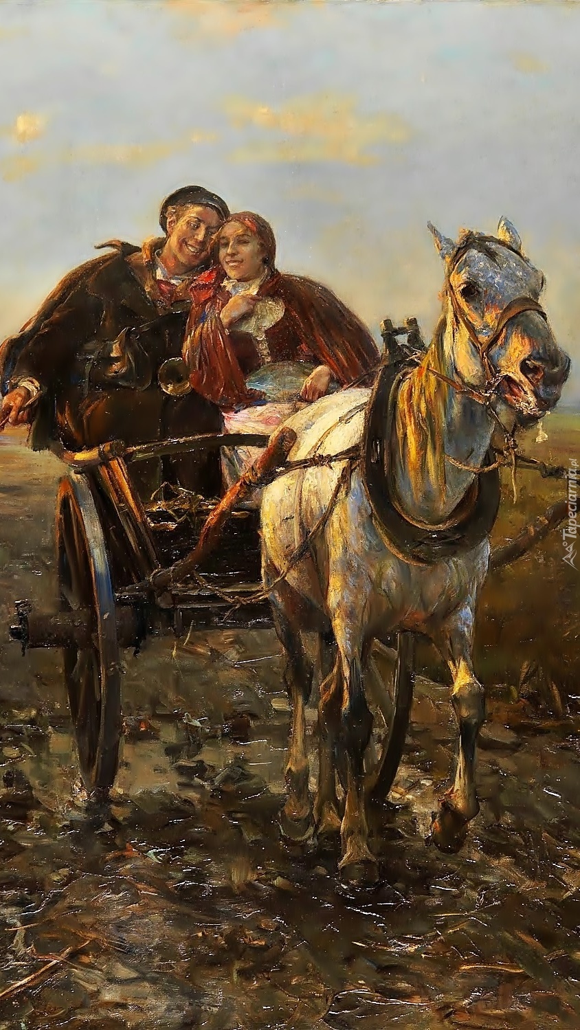 Edytor tapety: Przejażdżka na obrazie Alfreda Kowalskiego