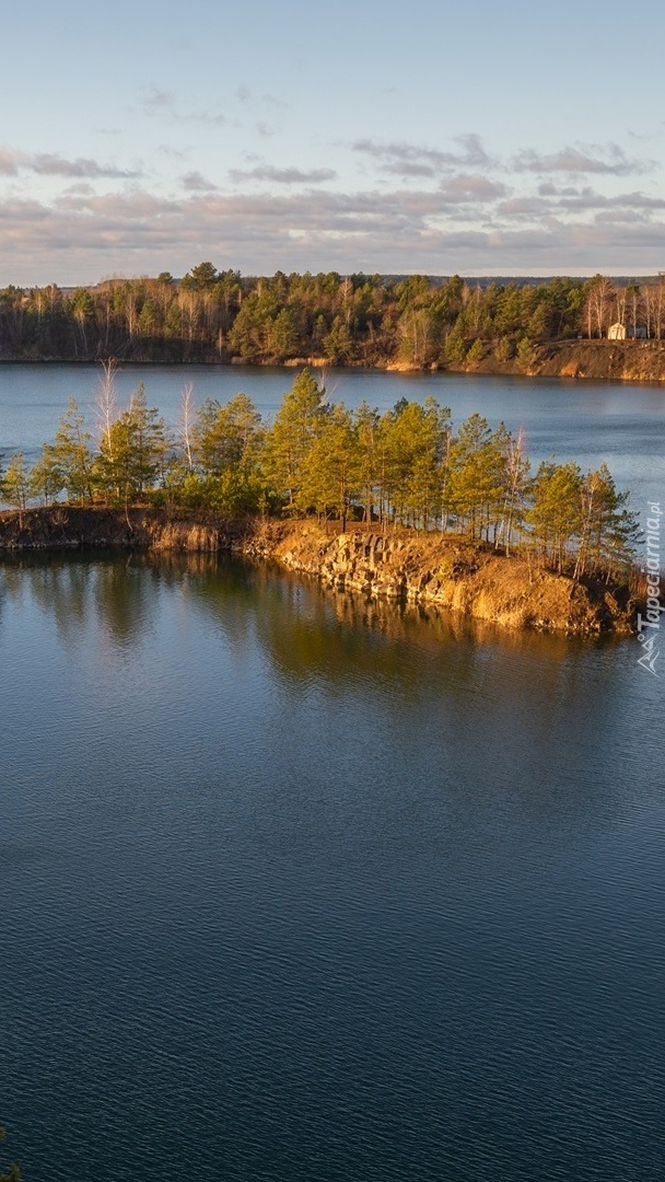 Edytor tapety: Zadrzewiona wysepka na jeziorze