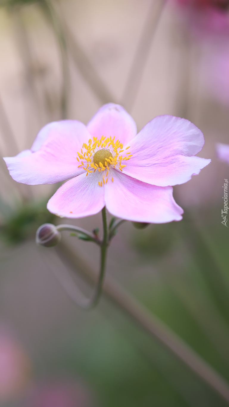 Edytor tapety: Różowy zawilec japoński z pąkiem