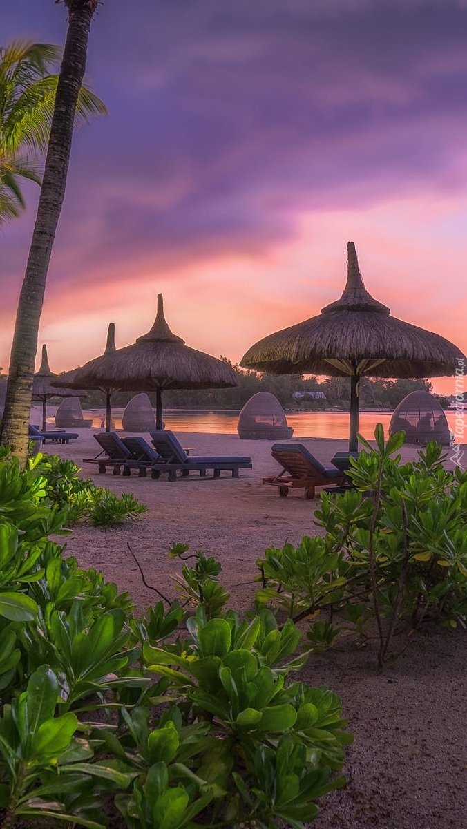 Edytor tapety: Leżaki pod parasolami na wyspie Mauritius