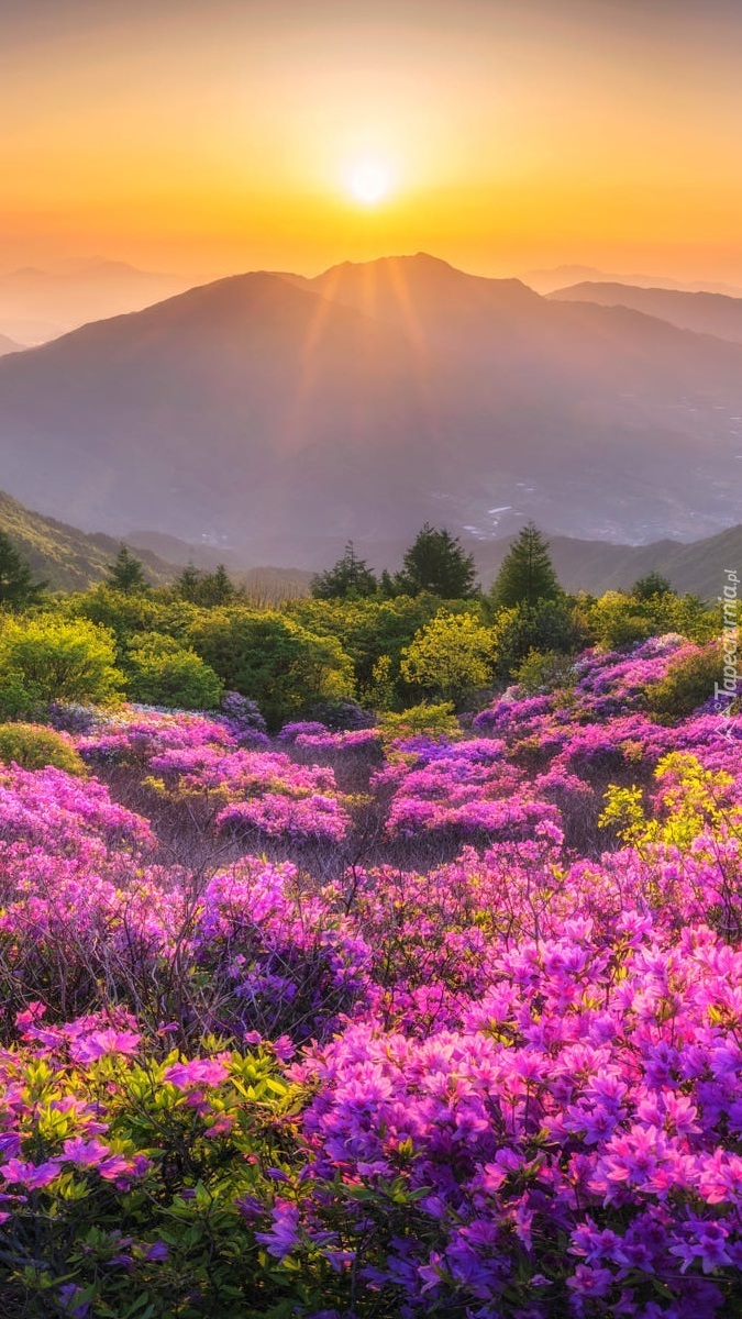 Edytor tapety: Różaneczniki w świetle wschodzącego słońca