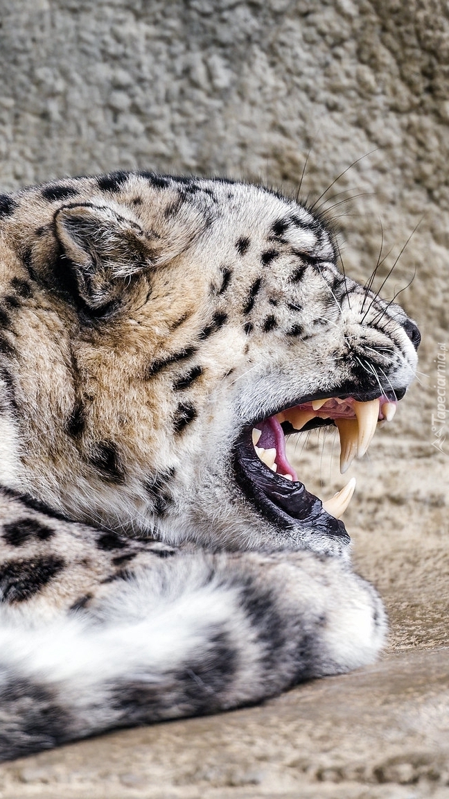 Edytor tapety: Irbis śnieżny z otwartą paszczą