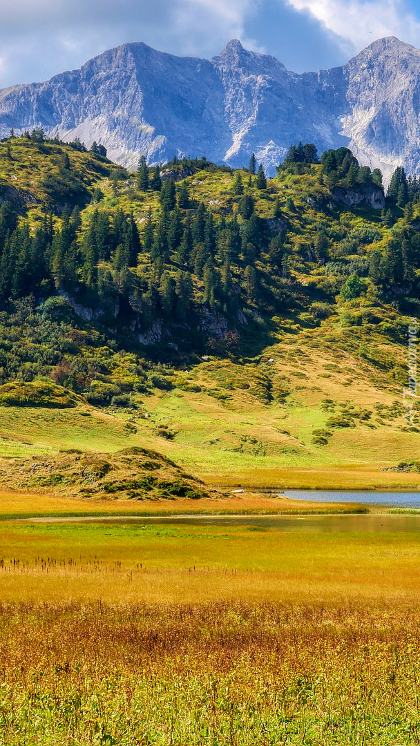Edytor tapety: Drzewa u podnóża Alp