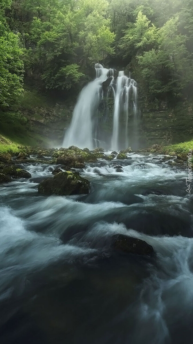 Edytor tapety: Wodospad w lesie