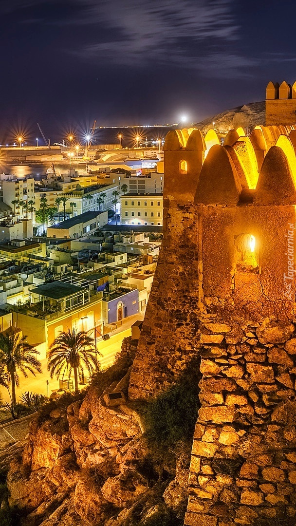 Edytor tapety: Oświetlona twierdza Alcazaba w Almerii