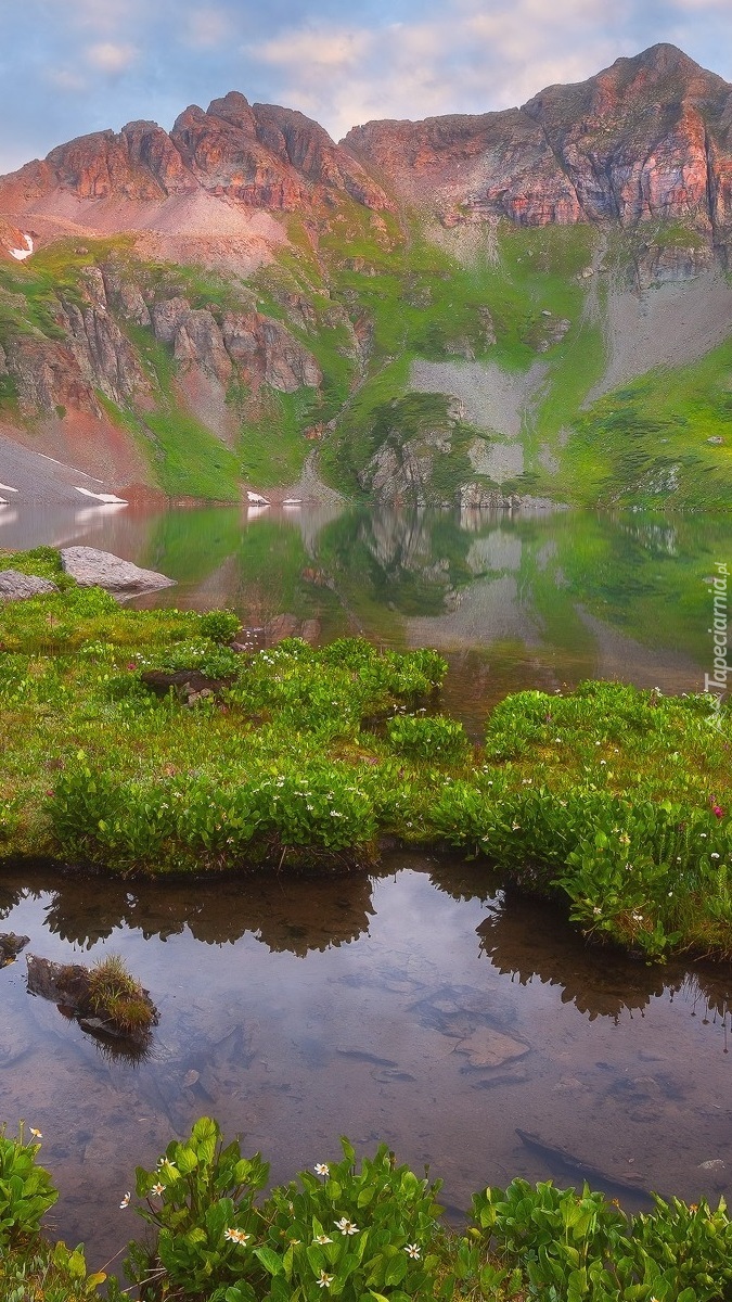 Edytor tapety: Rośliny na jeziorze w górach