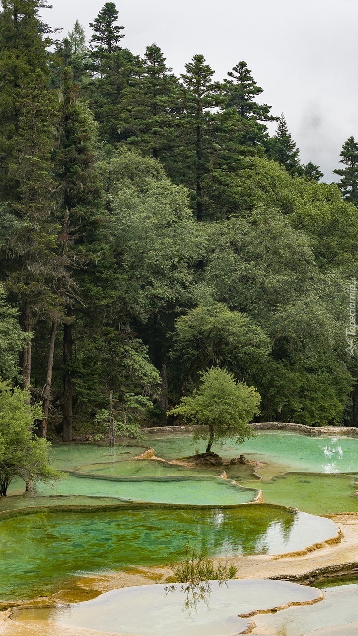 Edytor tapety: Drzewa nad sadzawkami tarasowymi