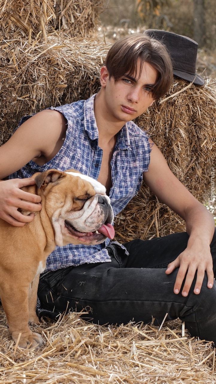 Edytor tapety: Chłopak z buldogiem angielskim
