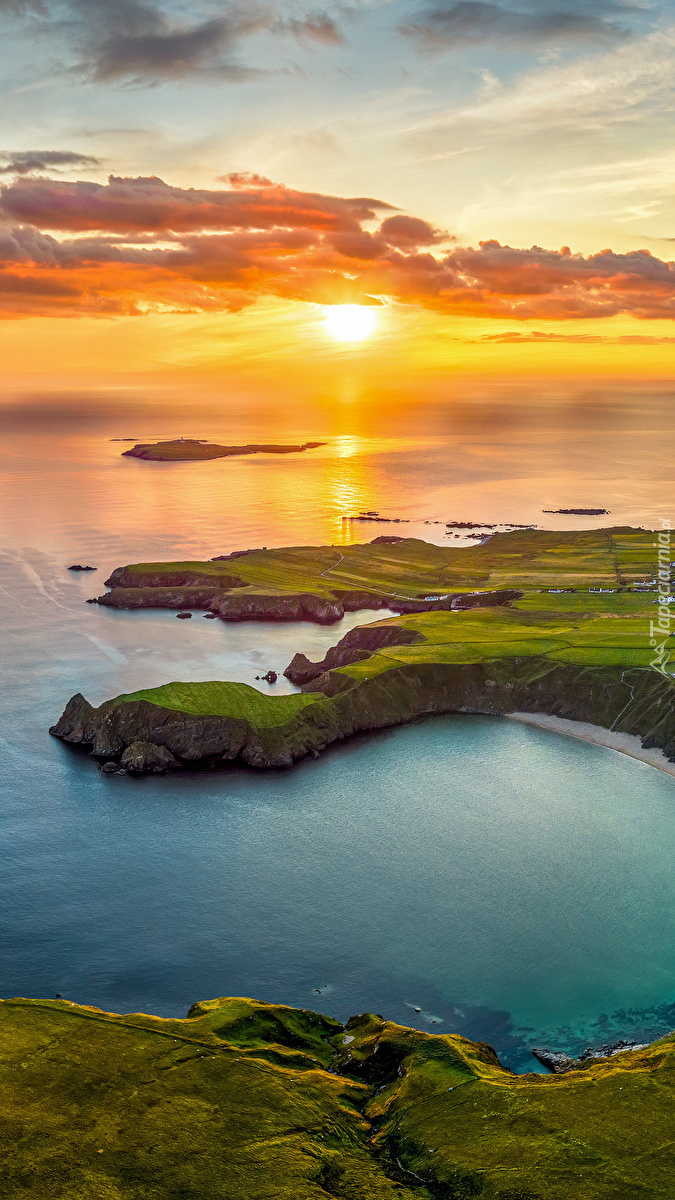 Edytor tapety: Zachód słońca nad wybrzeżem Irlandii