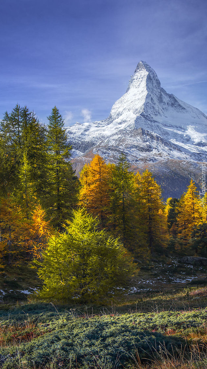 Edytor tapety: Widok na ośnieżony szczyt Matterhorn