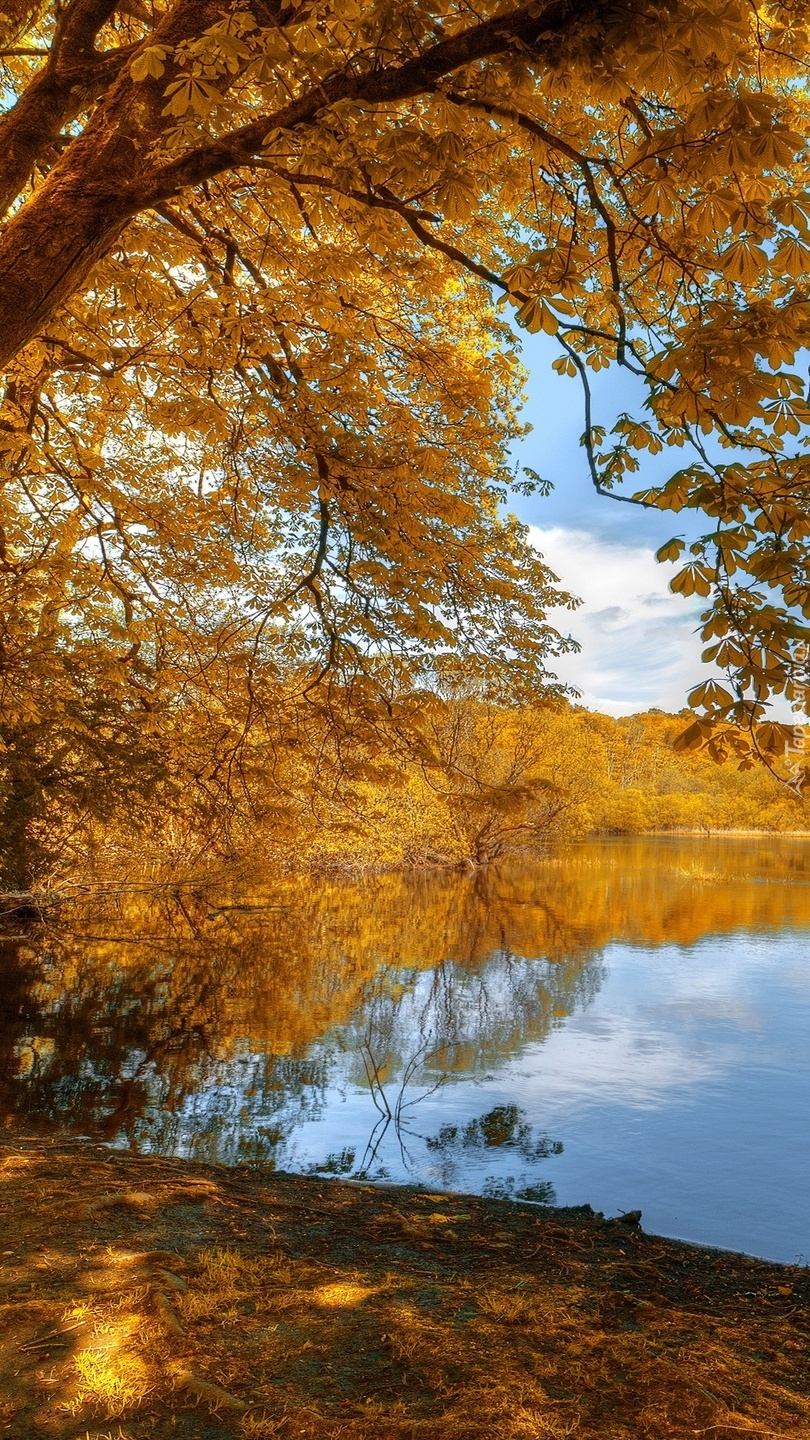 Edytor tapety: Pożółkły kssztanowiec nad jeziorem