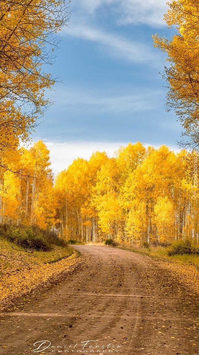 Edytor tapety: Pożółkłe topole osikowe przy drodze