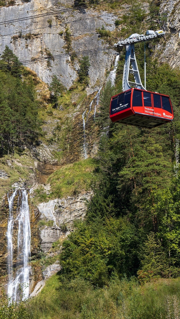 Edytor tapety: Kolej linowa nad wodospadem w Alpach