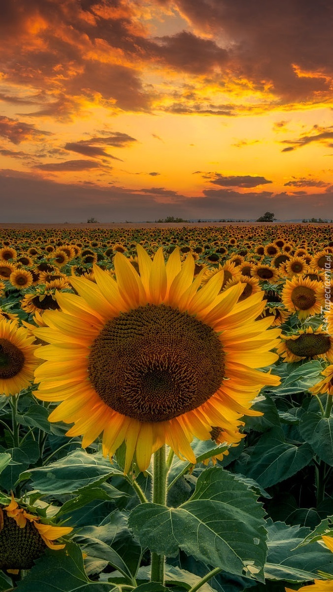 Edytor tapety: Pole słoneczników o zachodzie słońca