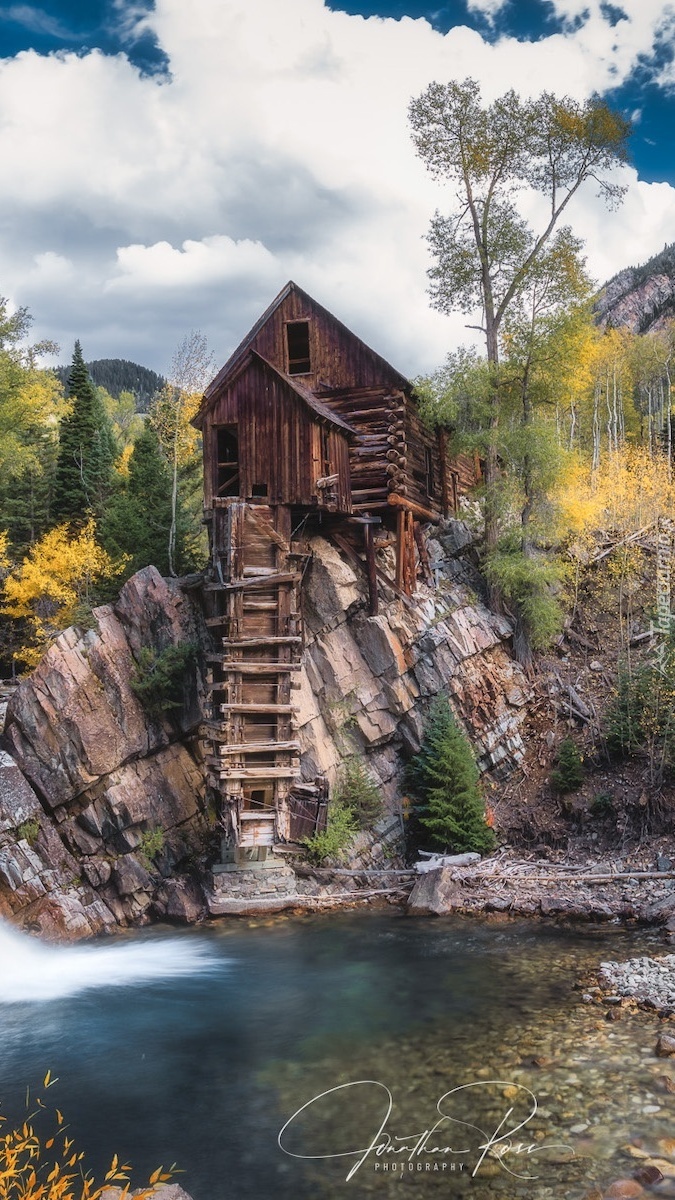 Edytor tapety: Młyn Crystal Mill wśród jesiennych drzew