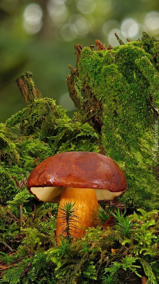 Edytor tapety: Borowik na mchu w zbliżeniu