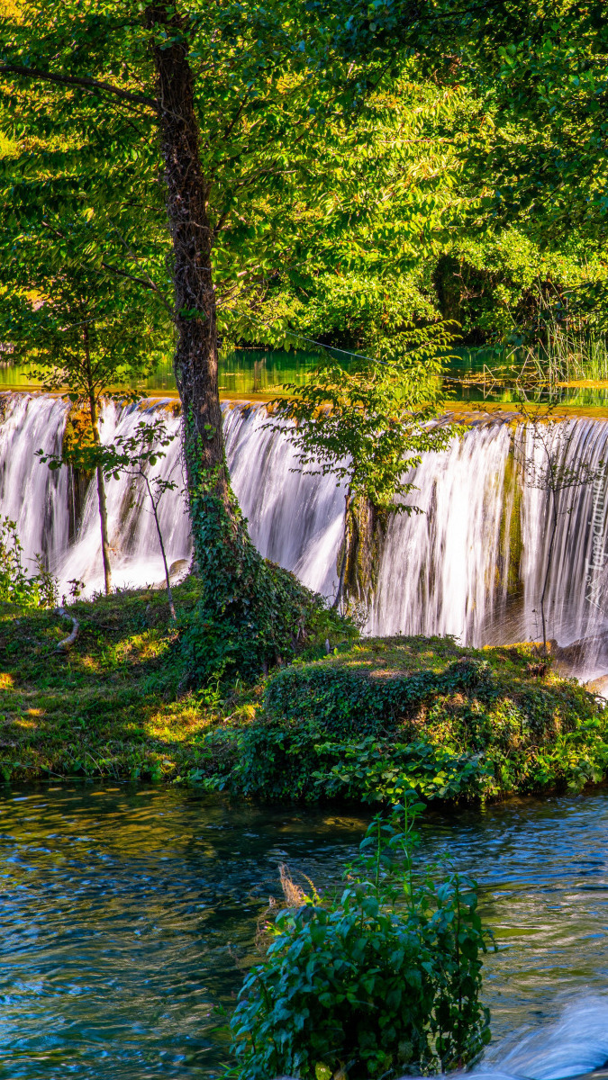 Edytor tapety: Drzewa przy wodospadzie w lesie