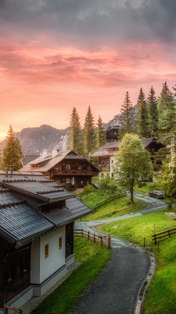 Edytor tapety: Poranek nad górską wioską w Austrii