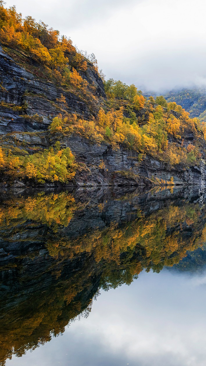 Edytor tapety: Pożółkłe drzewa nad jeziorem