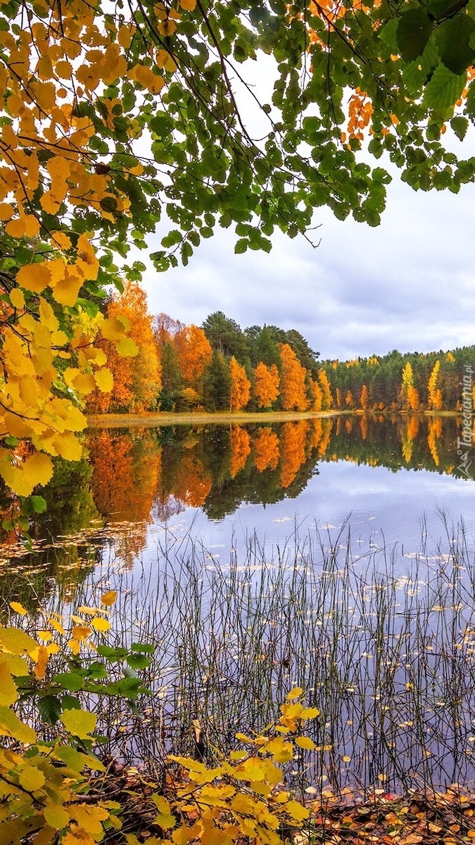 Edytor tapety: Kolorowe jesienne drzewa nad jeziorem