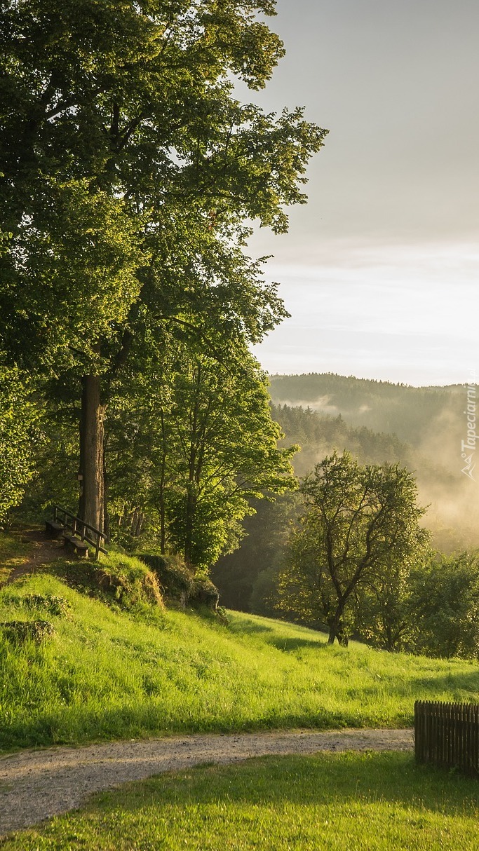 Edytor tapety: Drzewa na wzgórzu przy drodze
