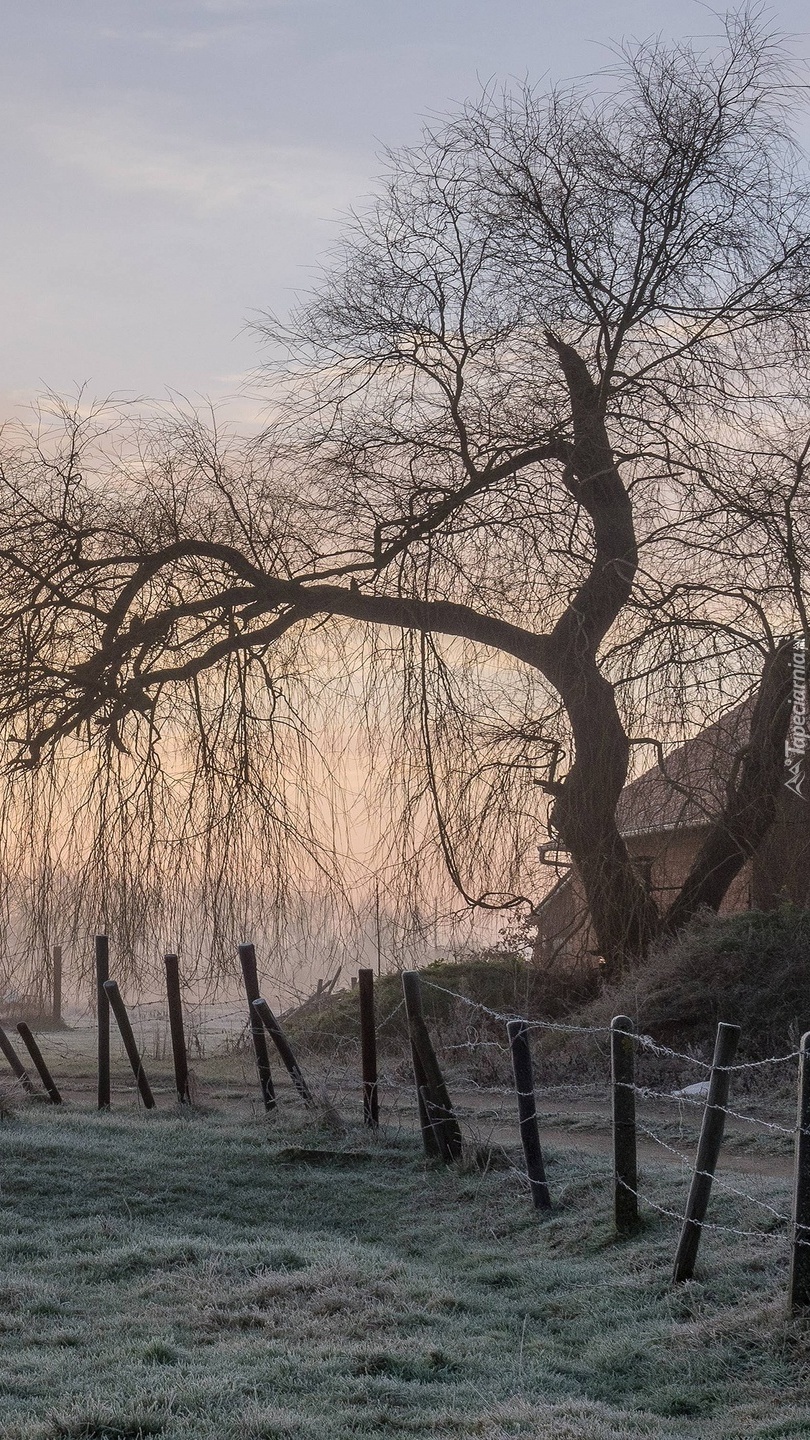 Edytor tapety: Ogrodzony dom na oszronionej łące