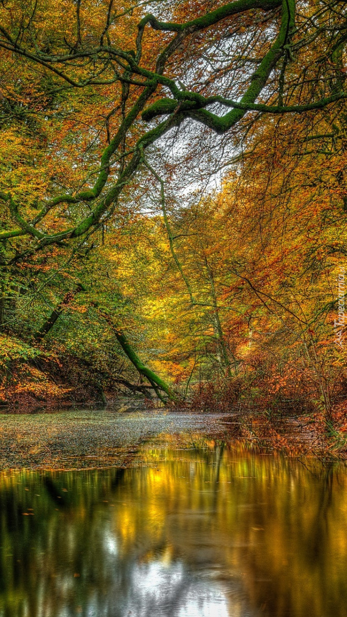 Edytor tapety: Kolorowe jesienne drzewa nad stawem