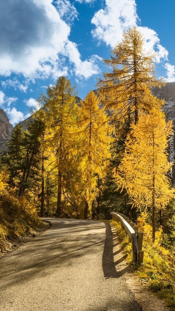 Edytor tapety: Pożółkłe drzewa przy ogrodzeniu na drodze