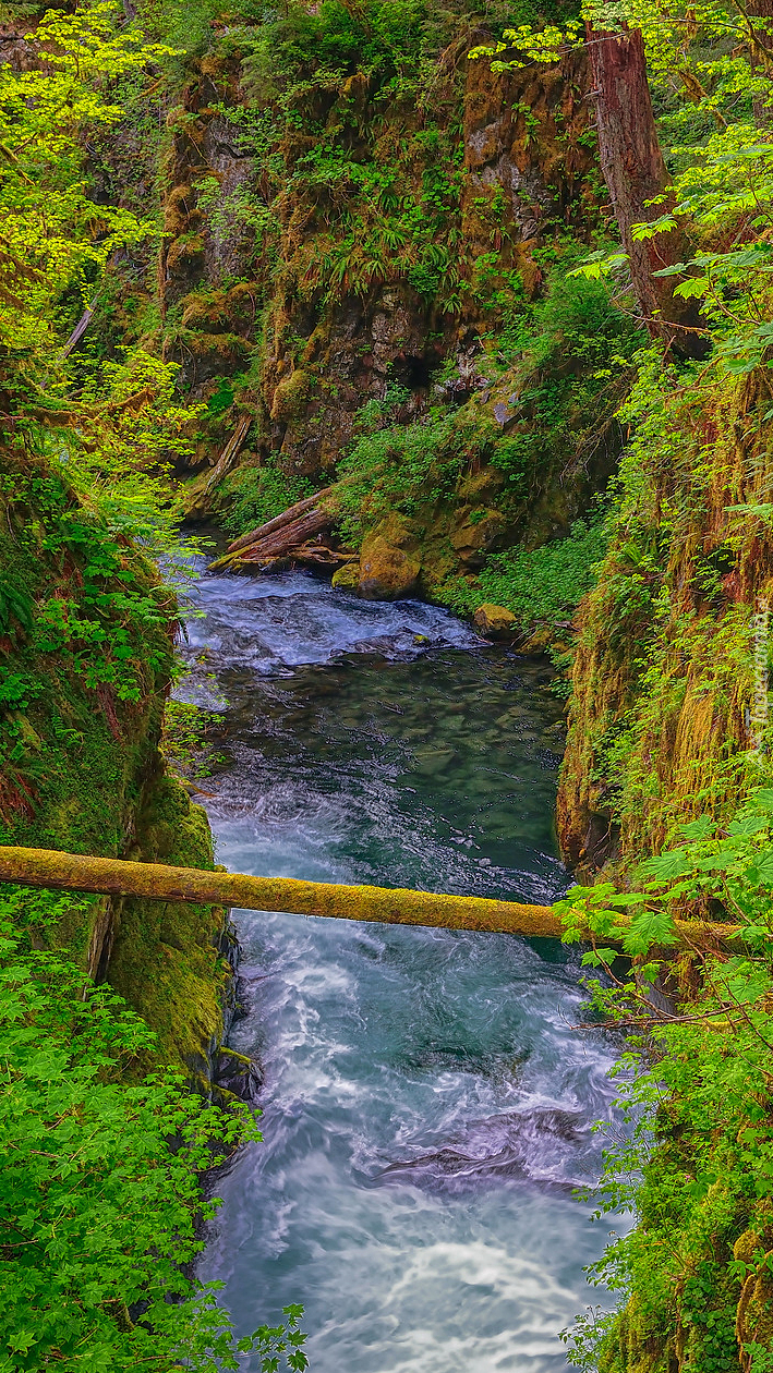 Edytor tapety: Złamane drzewo nad rzeką Sol Duc