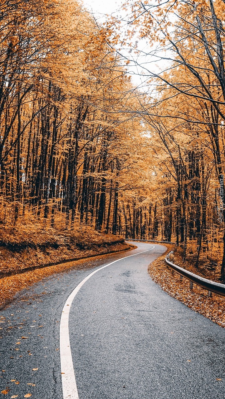 Edytor tapety: Asfaltowa droga przez jesienny las