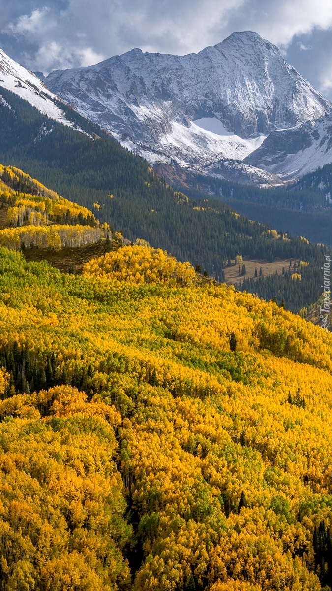 Edytor tapety: Pożółkłe drzewa i góra Capitol Peak