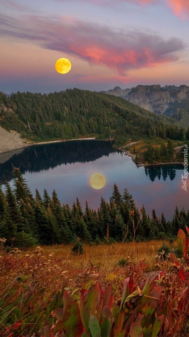 Edytor tapety: Odbicie księżyca w jeziorze Snow Lake