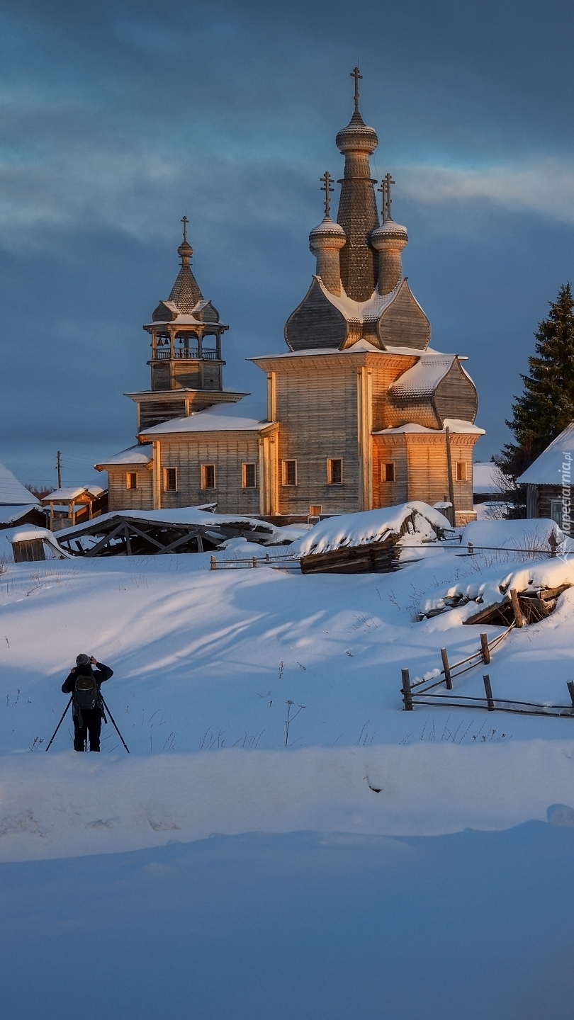 Edytor tapety: Cerkiew we wsi Kimzha zimową porą