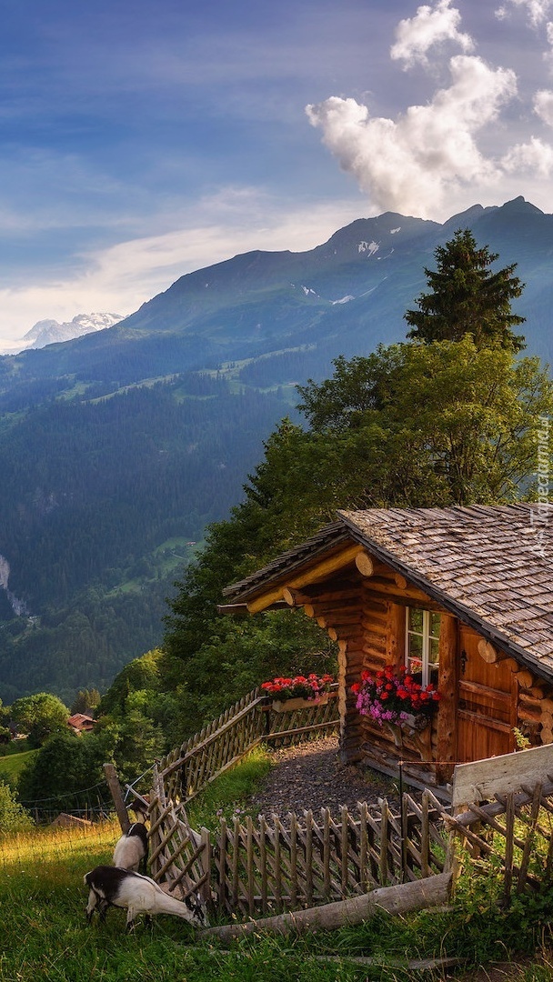 Edytor tapety: Dom na wzgórzu nad doliną Lauterbrunnental